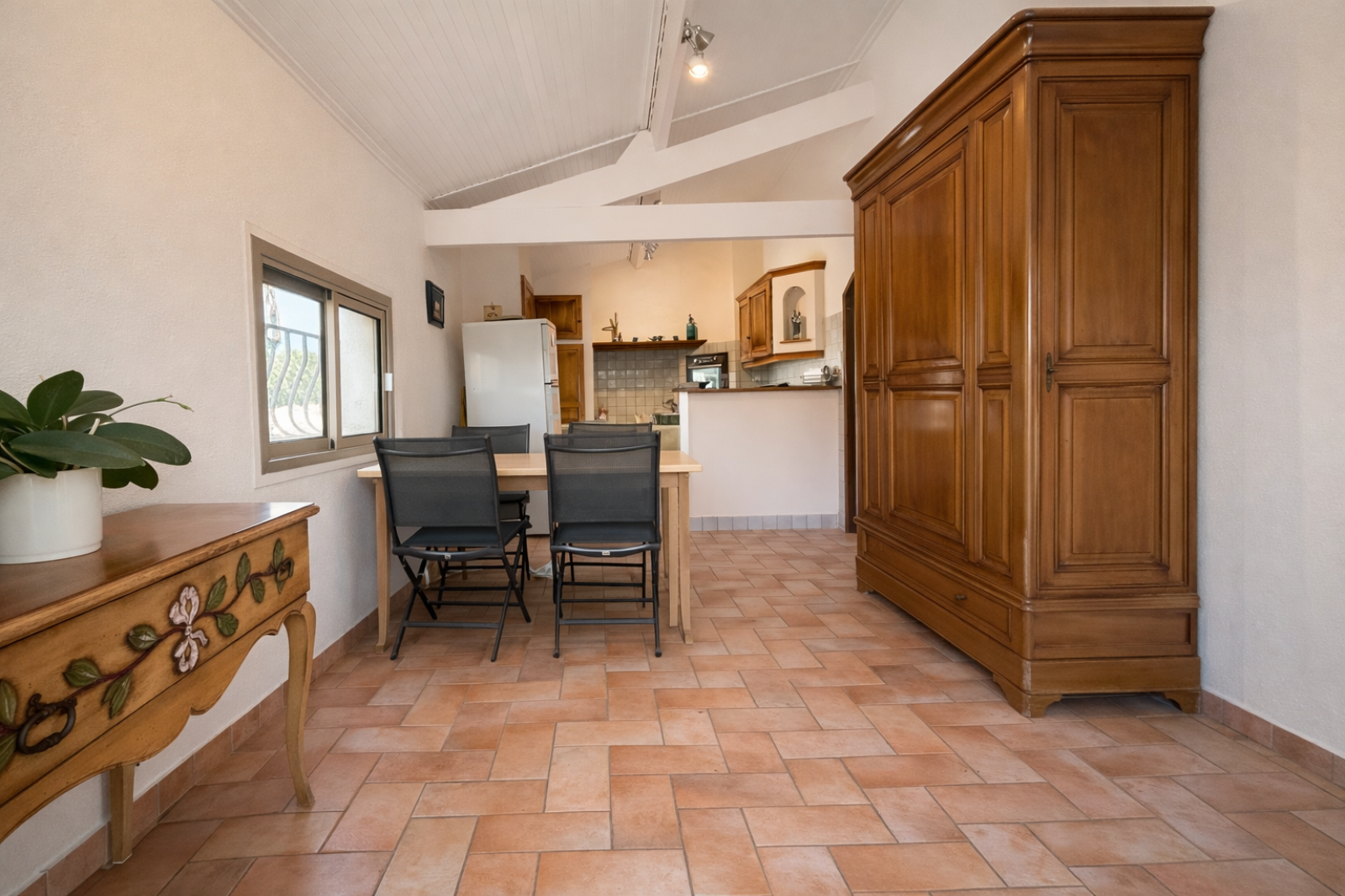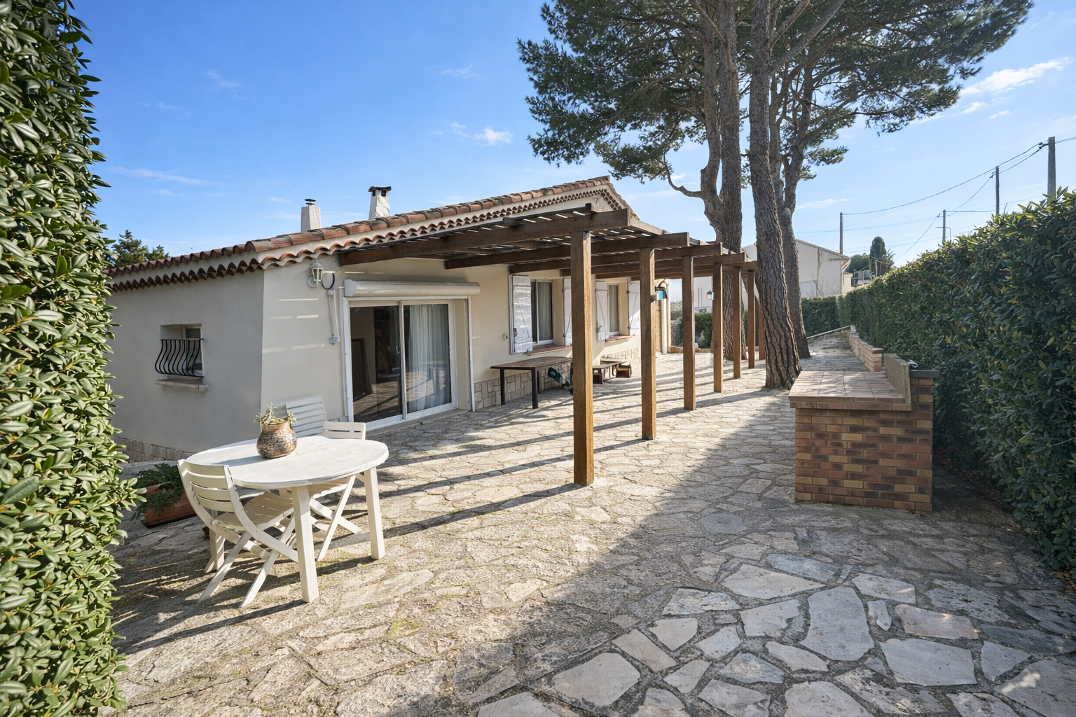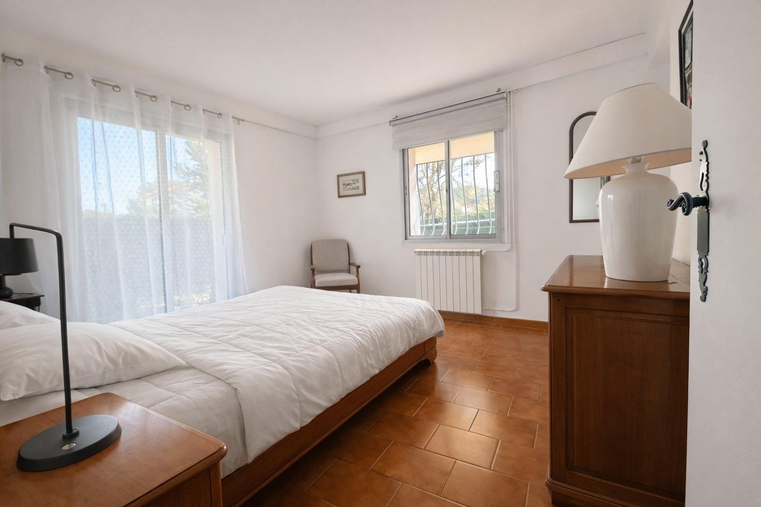 Villa de caractère de 170m², beaux volumes, sur un terrain de 680m² , piscinable . Sous les pins , au calme . Au niveau superieur , séjour , salle à manger , cuisine .Au niveau inferieur , la partie nuit avec 4 chambres dont une double , 2 salles de douche , 2 wc. Beau jardin arboré , vue degagée, belle luminosité.