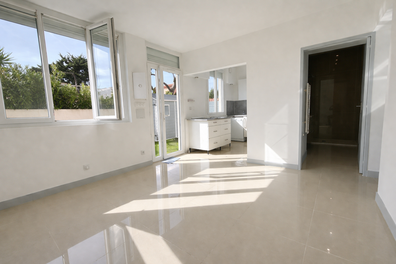 Maison de ville en duplex d’environ 55 m², entièrement rénovée, située à deux pas de la mer. Elle se compose d’un séjour avec cuisine, de deux chambres chacune avec salle d’eau et WC.Vous profiterez d’un jolie jardin, exposée plein Sud et de belles prestations. Honoraires à la charge du vendeur.