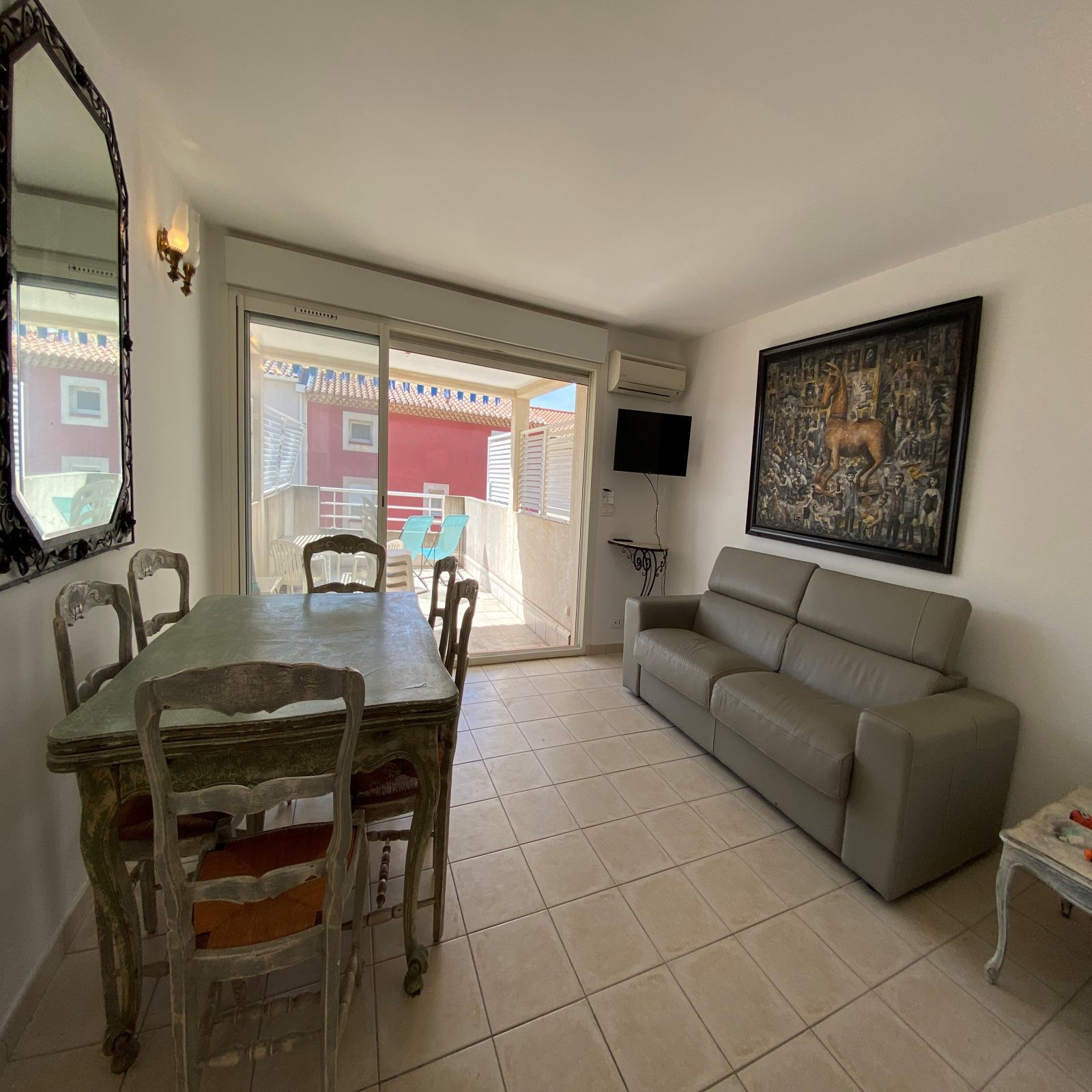 Il se compiose d'un séjour avec cuisine ouverte sur terrasse plein Sud, vue mer , une salle d'eau, une buanderie, wc séparé, une chambre spatieuse. Belles prestations , Climatisation reversible,double vitrage.