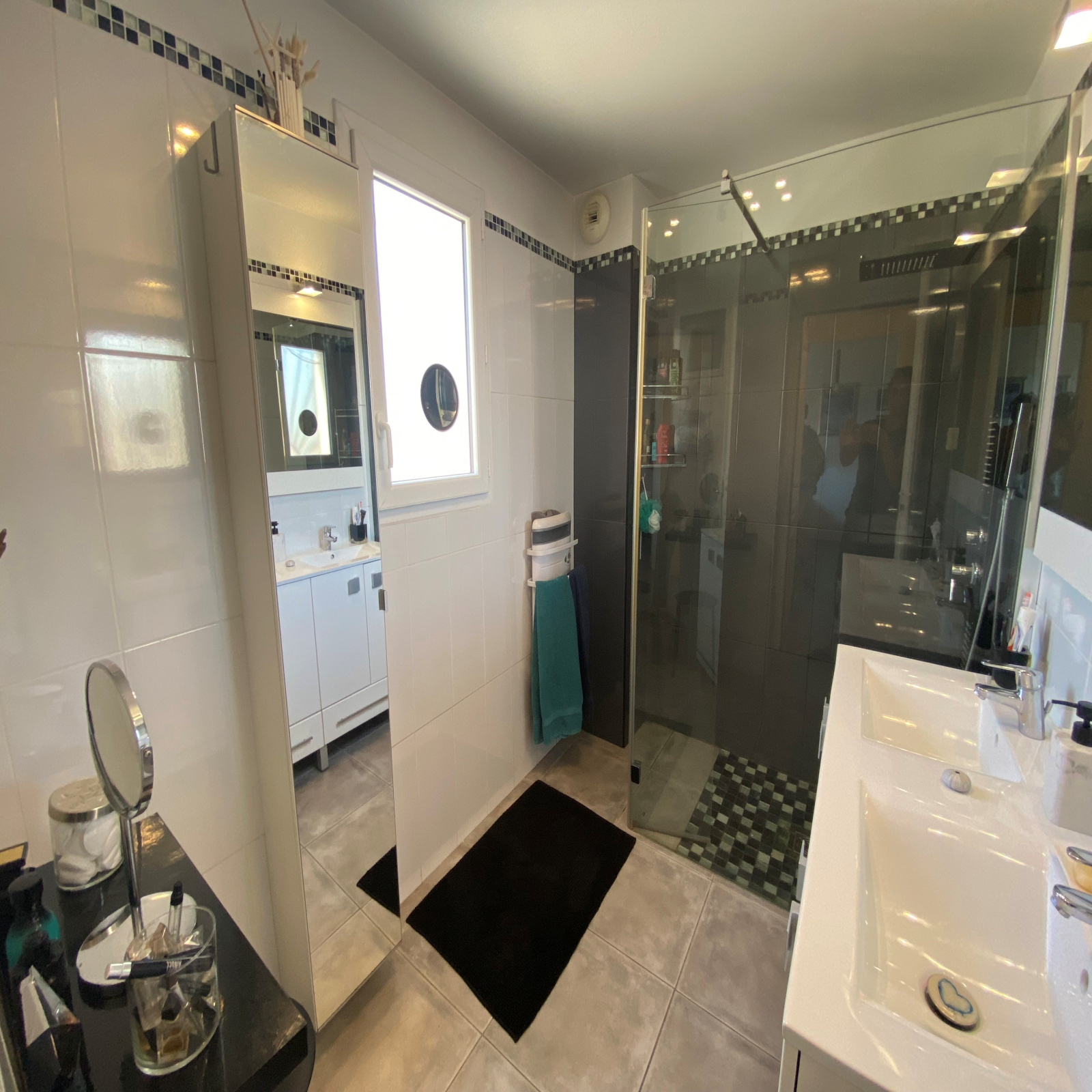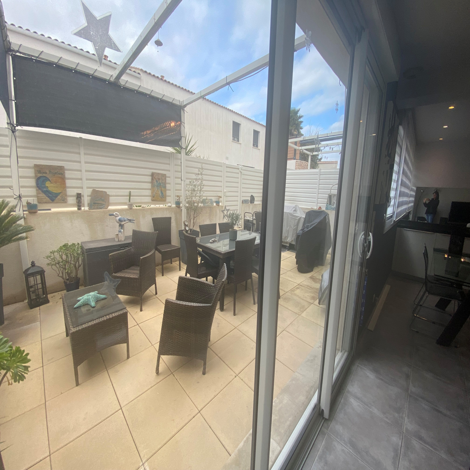 Maison contemporaine de 136m² habitable avec terrasse de 30m².En rez de chaussée un séjour lumineux, une cuisine ouverte entierement equipée , l'ensemble sur belle terrasse Sud/Ouest, une salle de douche avec wc , un cellier. A l'étage , trois chambres avec rangements dont un bureau , un dressing, une salle de douche , un wc indépendant. Un étage supérieur avec combles aménagés en chambre , coin tv , une salle de bain , un wc, rangements. Belles prestations , beaux volumes . Climatisation reversible , prise d'aspiration au sol. Petite copropriété de 6 lots , sécurisée , au calme. Parking.