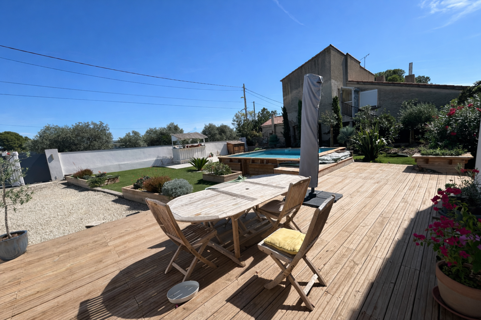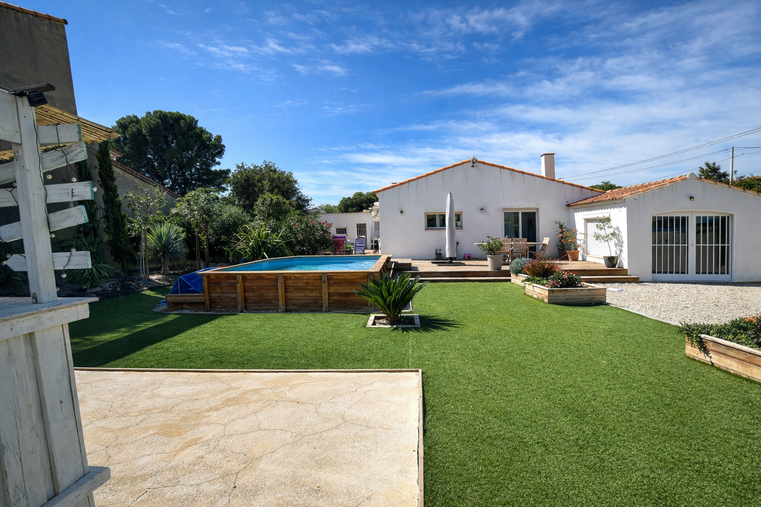 Située dans un environnement privilégié entre vignes et village, au calme absolu, Villa contemporaine de type 4 d’environ 92 m², implantée sur un magnifique terrain de 800 m².Elle offre de beaux volumes, une luminosité optimale et des prestations de qualité.Vous profiterez d’un extérieur soigné avec piscine.Atout supplémentaire : possibilité d’aménager un studio indépendant d’environ 40 m², parfait pour un projet locatif, familial ou professionnel.Annexes et Garage.Bien rare sur le secteur. Honoraires agence charge vendeur.
